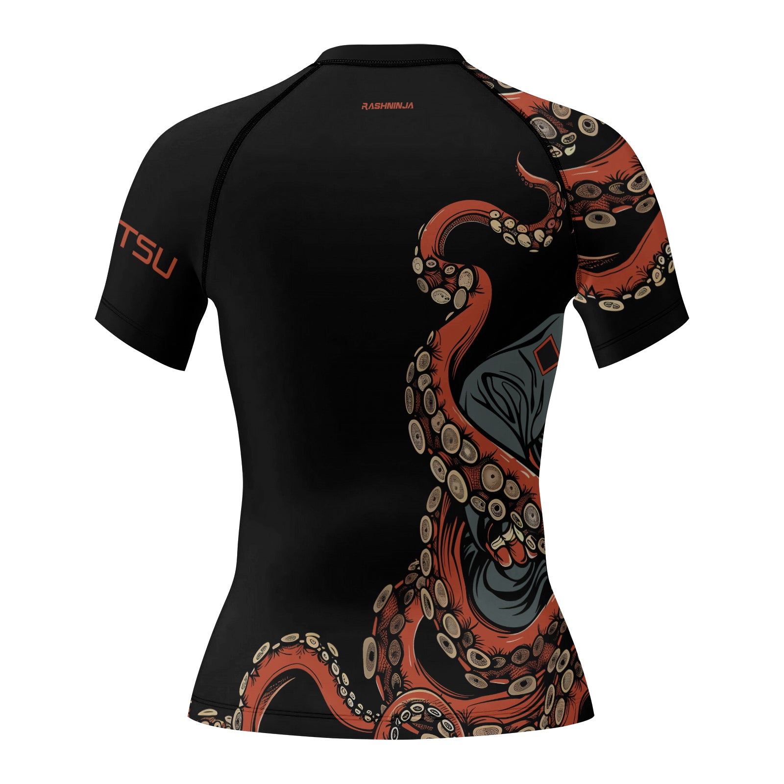 Rashninja Octopus Red Women's Short Sleeve Rash Guard