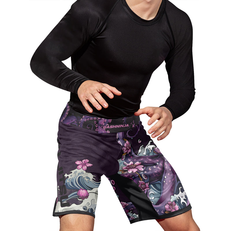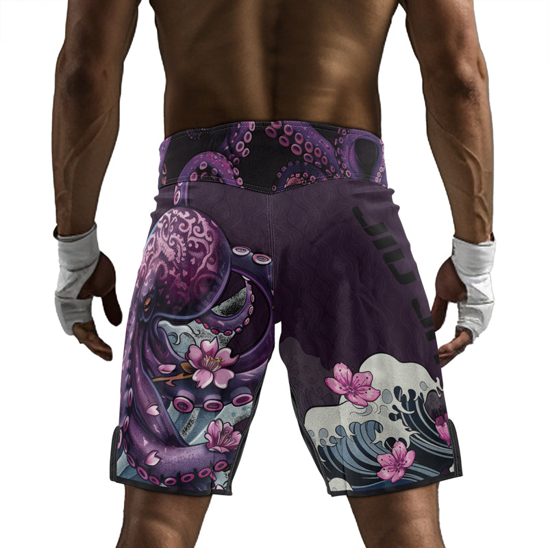 Rashninja Octopus Sakura Purple Men's Fight Shorts