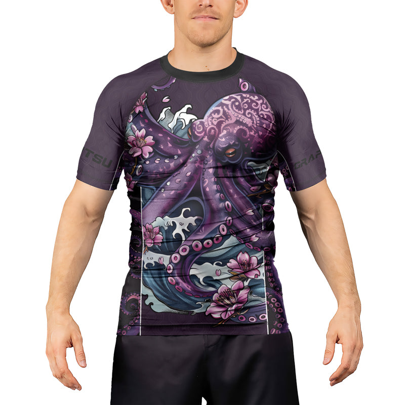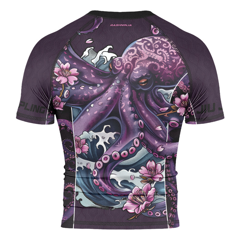 Rashninja Octopus Sakura Purple Men's Short Sleeve Rash Guard
