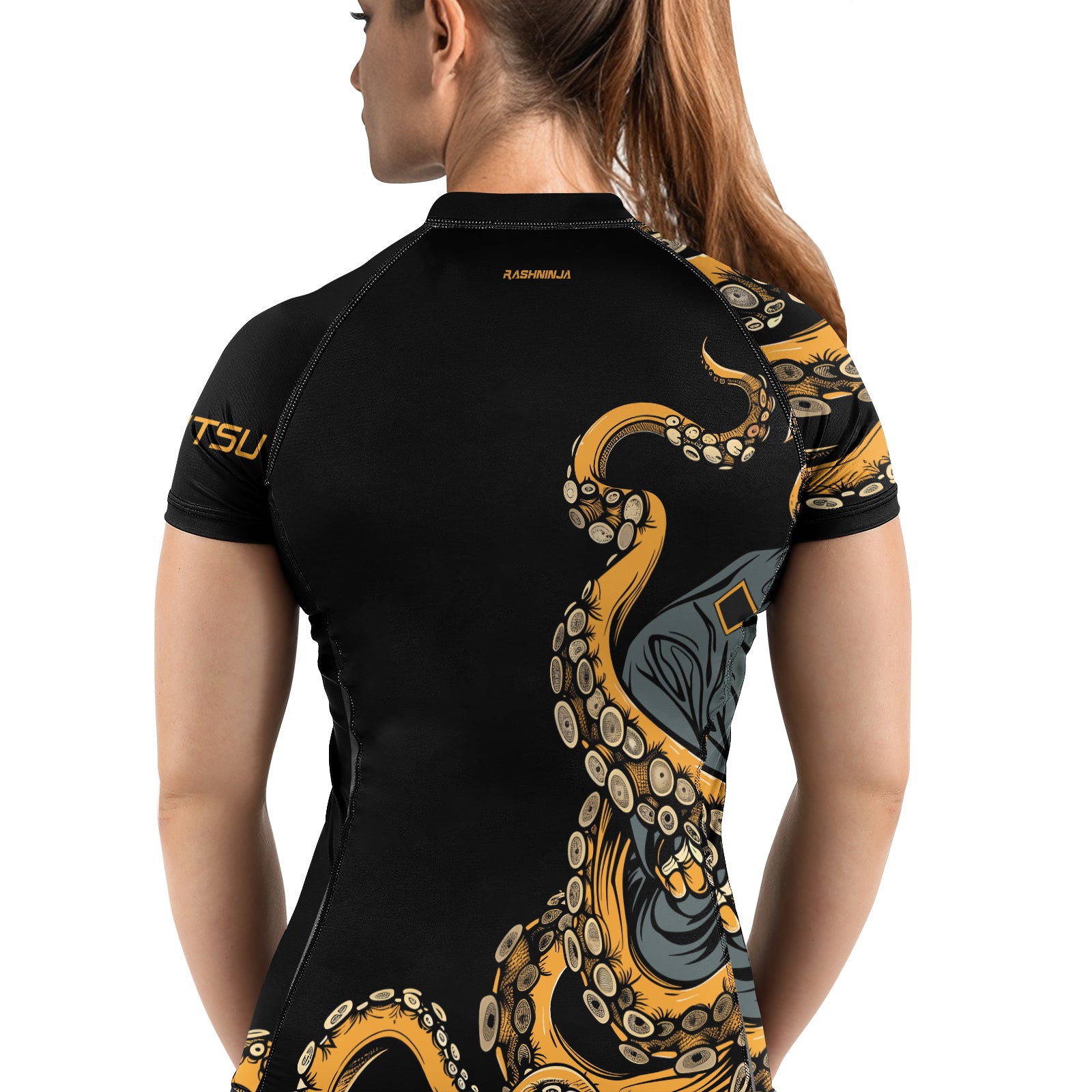 Rashninja Octopus Yellow Women's Short Sleeve Rash Guard