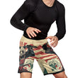 Thank you for taking the time to share your experience with our Rashninja Patriotic Skull Distressed Men's Fight Shorts. We are delighted to hear that you are pleased with the quality and artistic style of the shirt and shorts combo. We strive to provide our customers with the best products for their training needs. Thank you for choosing Rashninja. Keep rolling!