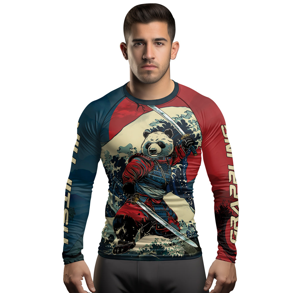 Rashninja Panda Samurai River Men's Long Sleeve Rash Guard