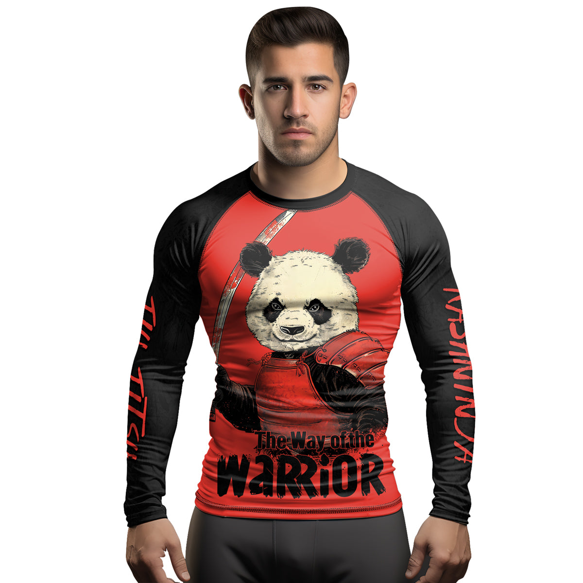 Rashninja Panda the Way of the Warrior Mastery Men's Long Sleeve Rash Guard