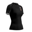 Our women's short sleeve compression shirt is made with a high-performance blend of 85% Polyester and 15% Spandex, providing a sleek and flexible fit that enables unrestricted motion during any workout or martial arts training.