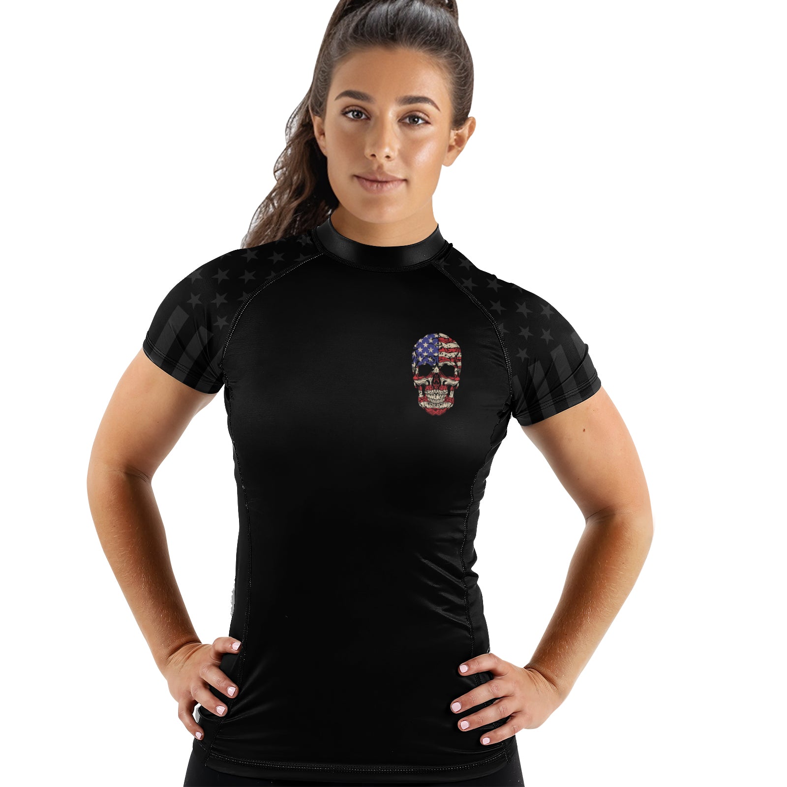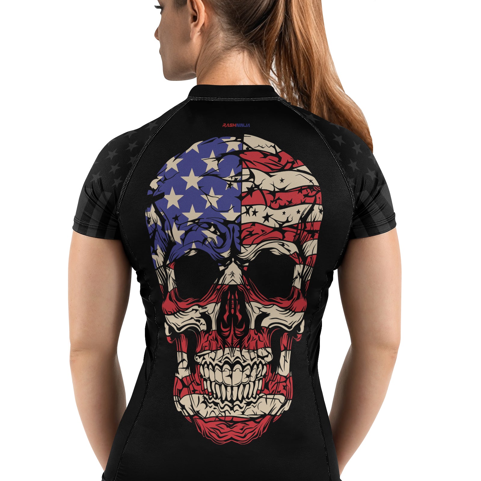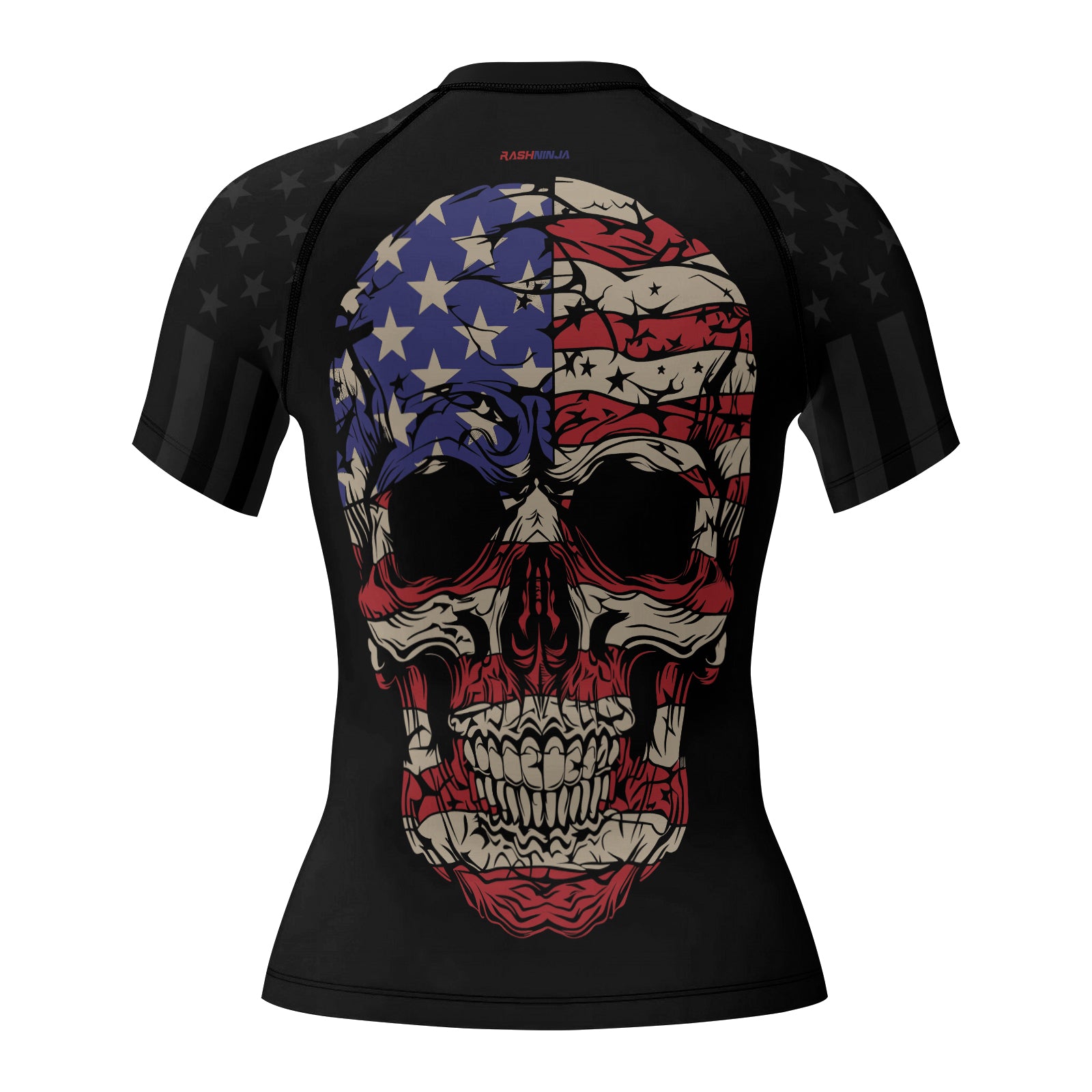 Rashninja Patriotic Skull Stripes Women's Short Sleeve Rash Guard