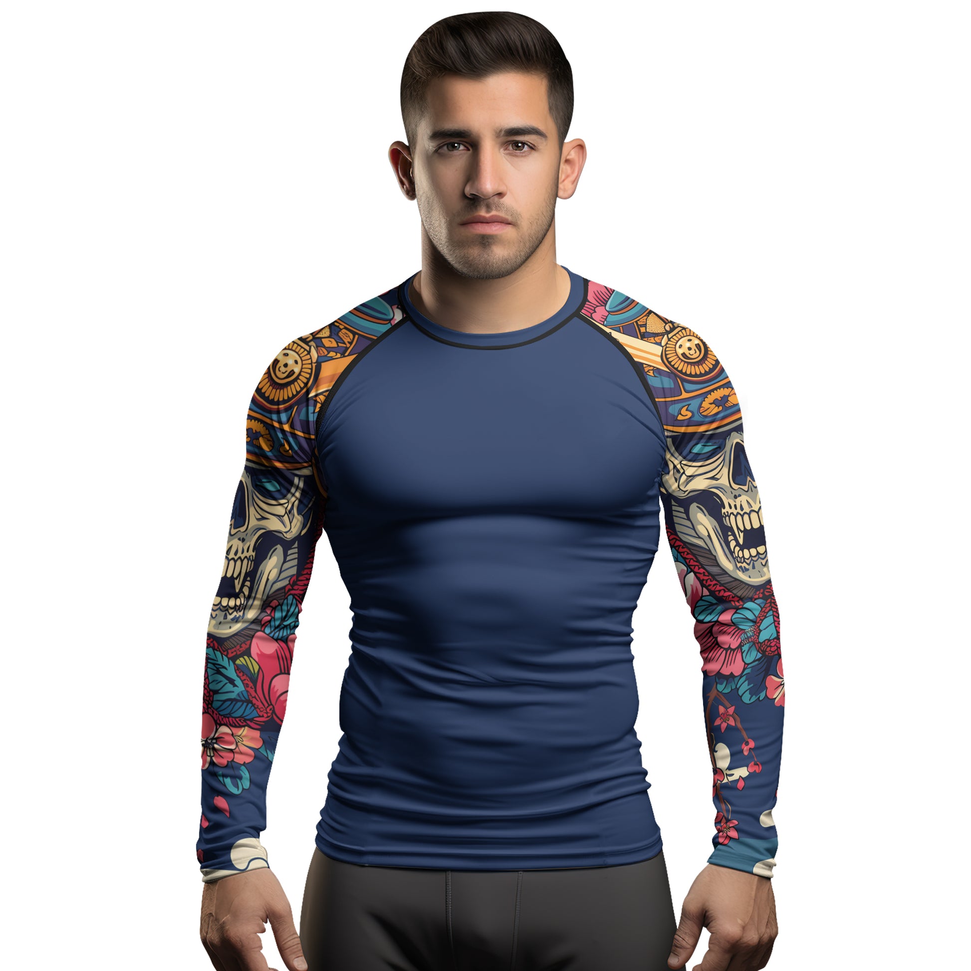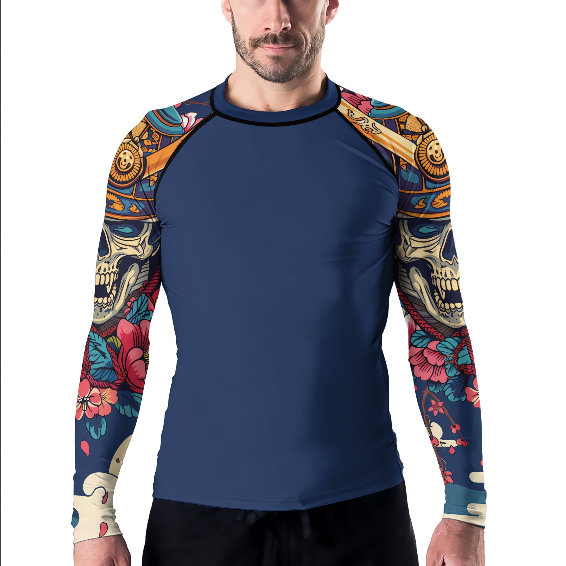 Rashninja Samurai Skull Blossom Men's Long Sleeve Rash Guard