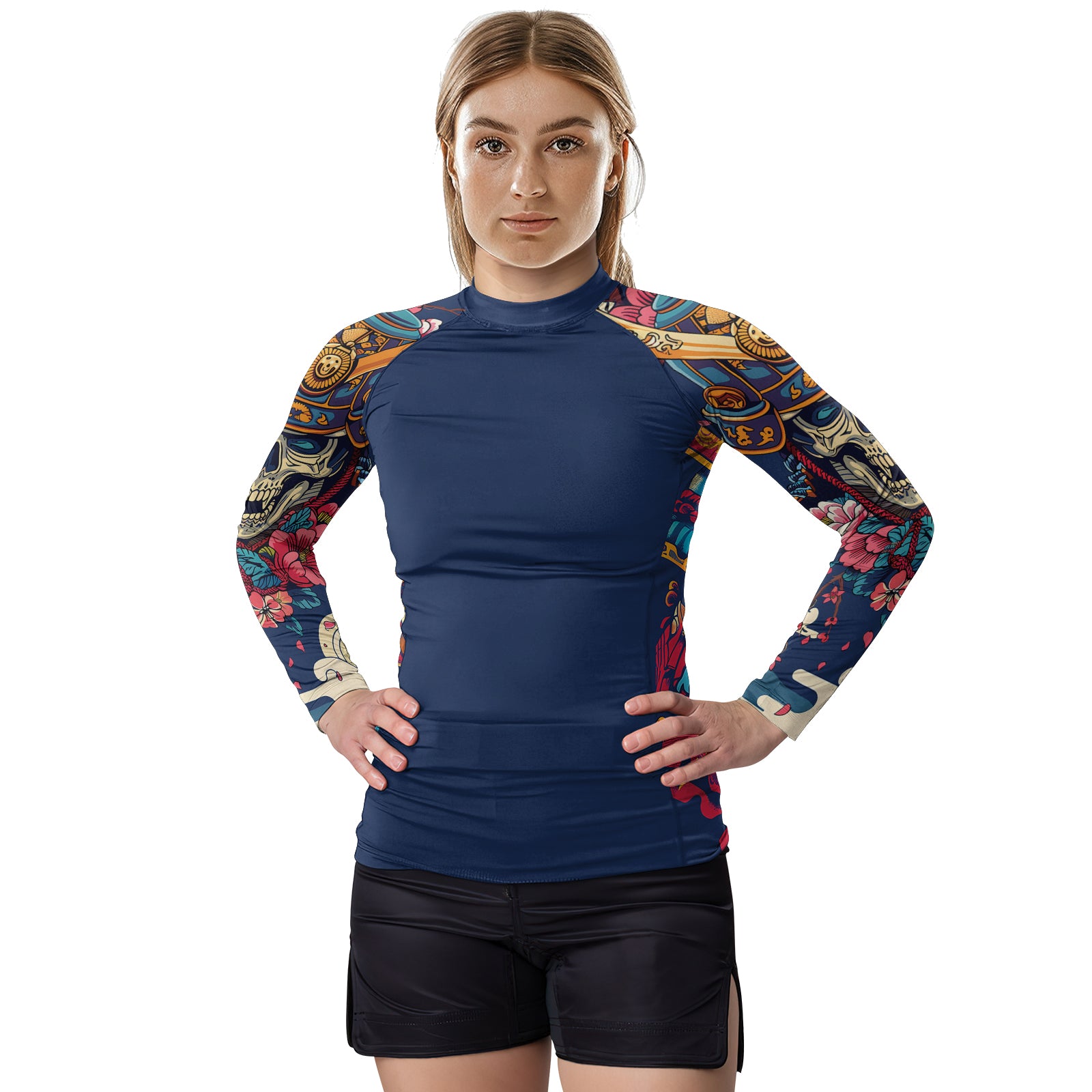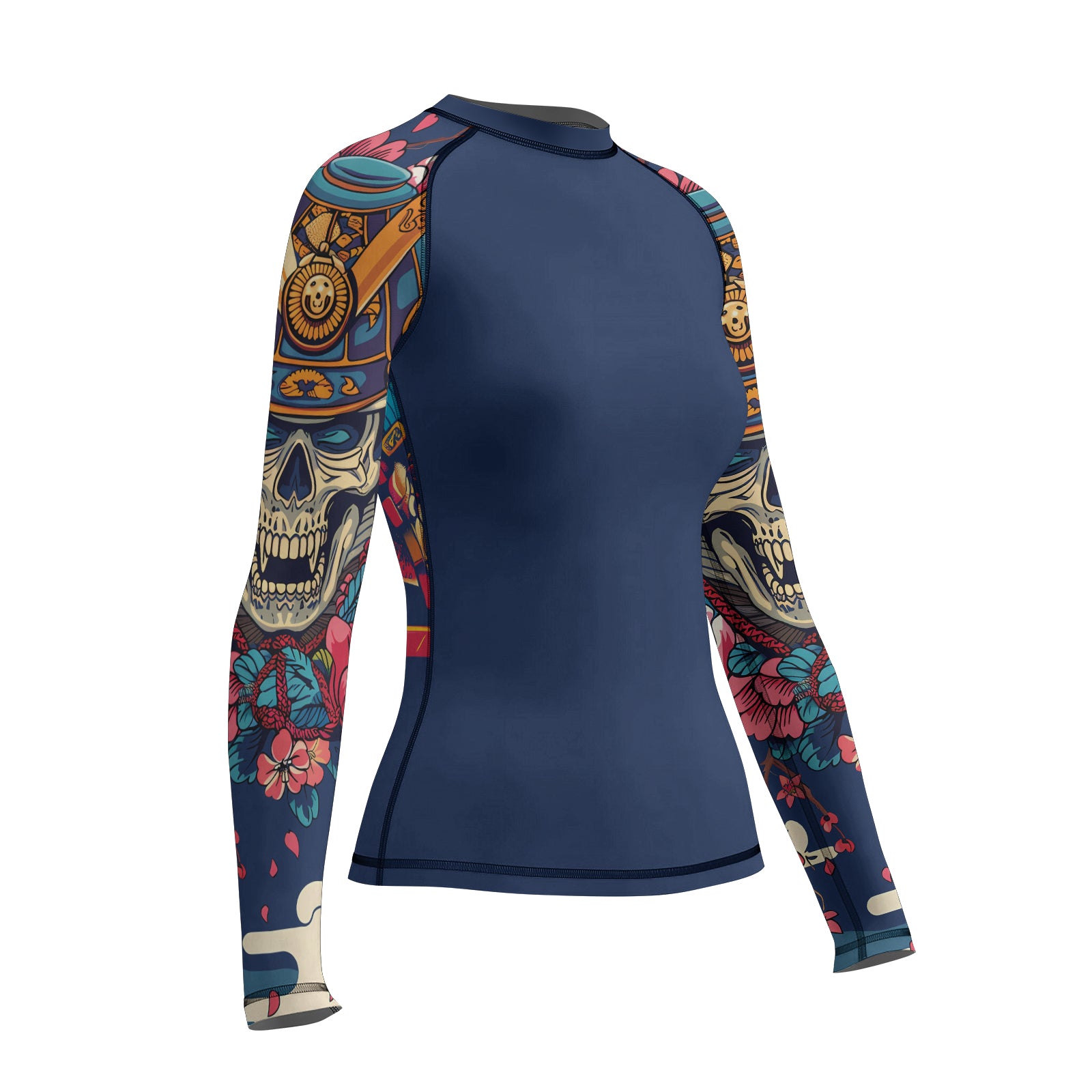 Rashninja Samurai Skull Blossom Women's Long Sleeve Rash Guard