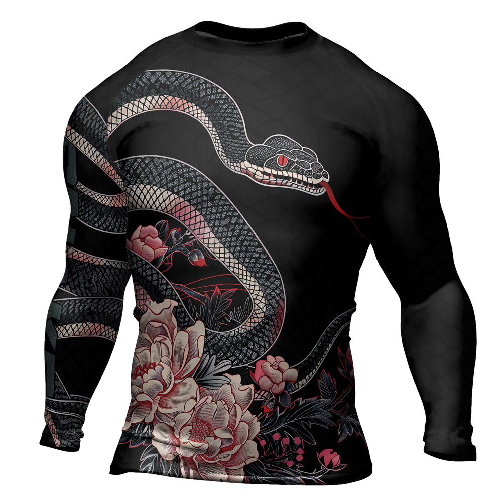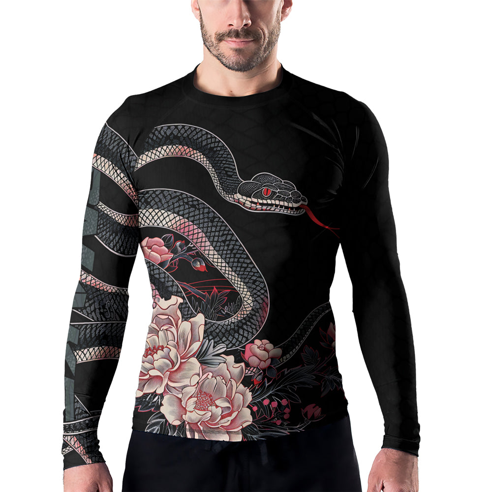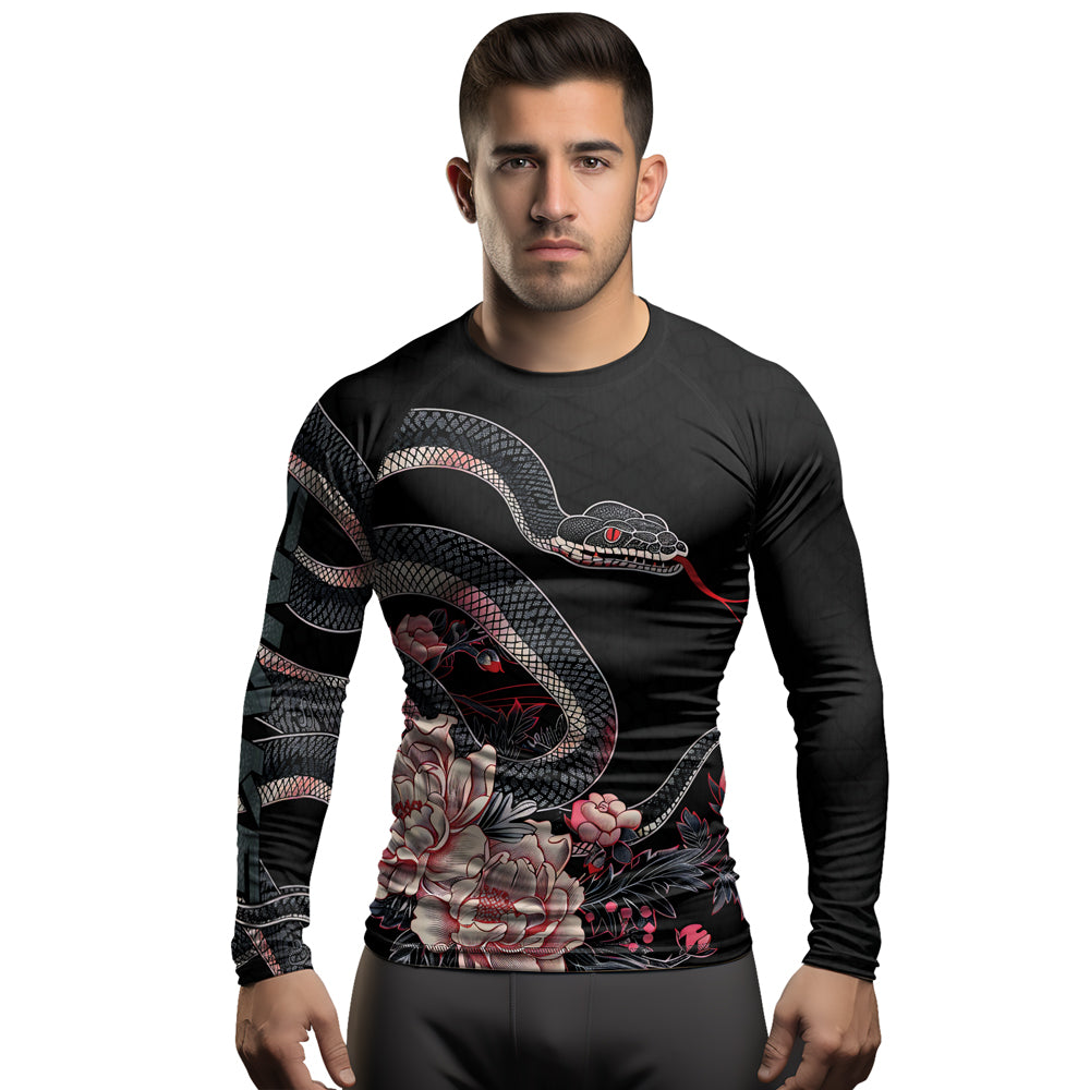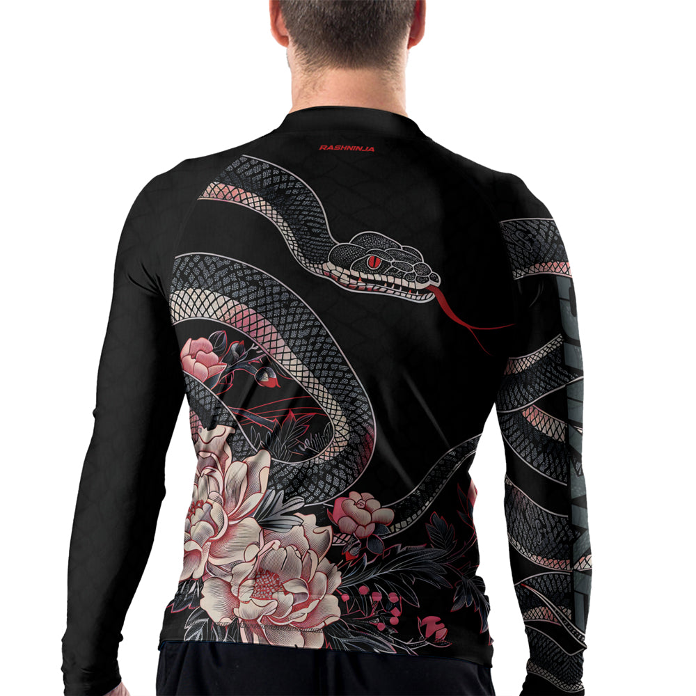 Rashninja Snake Crimson Bloom Men's Long Sleeve Rash Guard