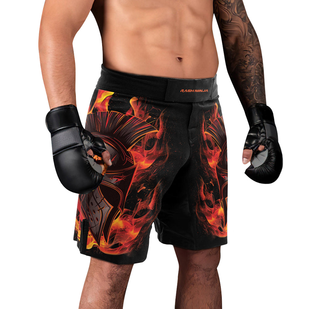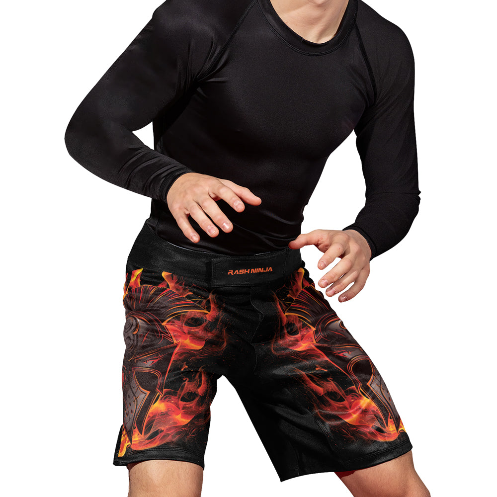 Rashninja Spartan Flame Helm Men's Fight Shorts