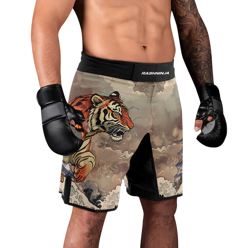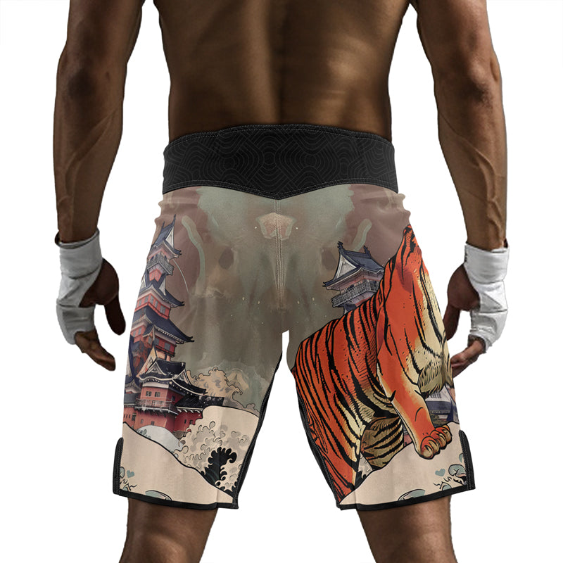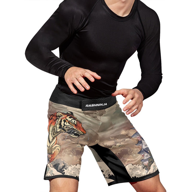 Rashninja Tiger Temple Wave Black Orange Men's Fight Shorts