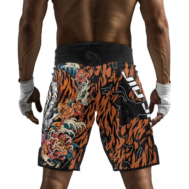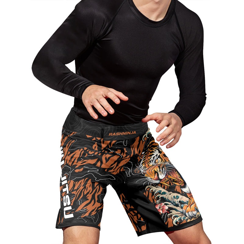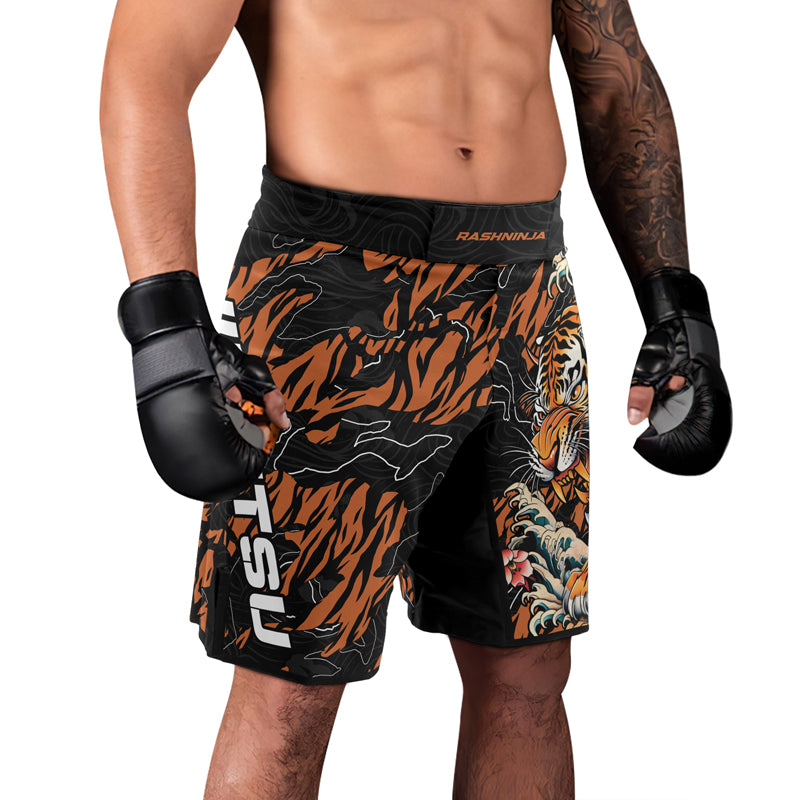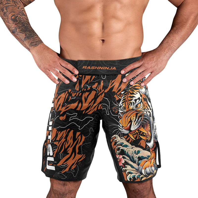 Rashninja Tiger Wave Black Orange Men's Fight Shorts