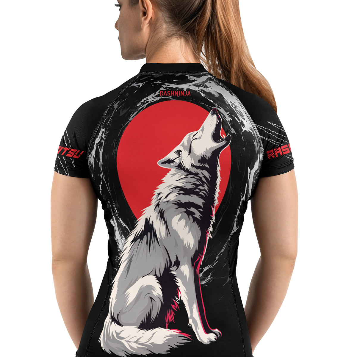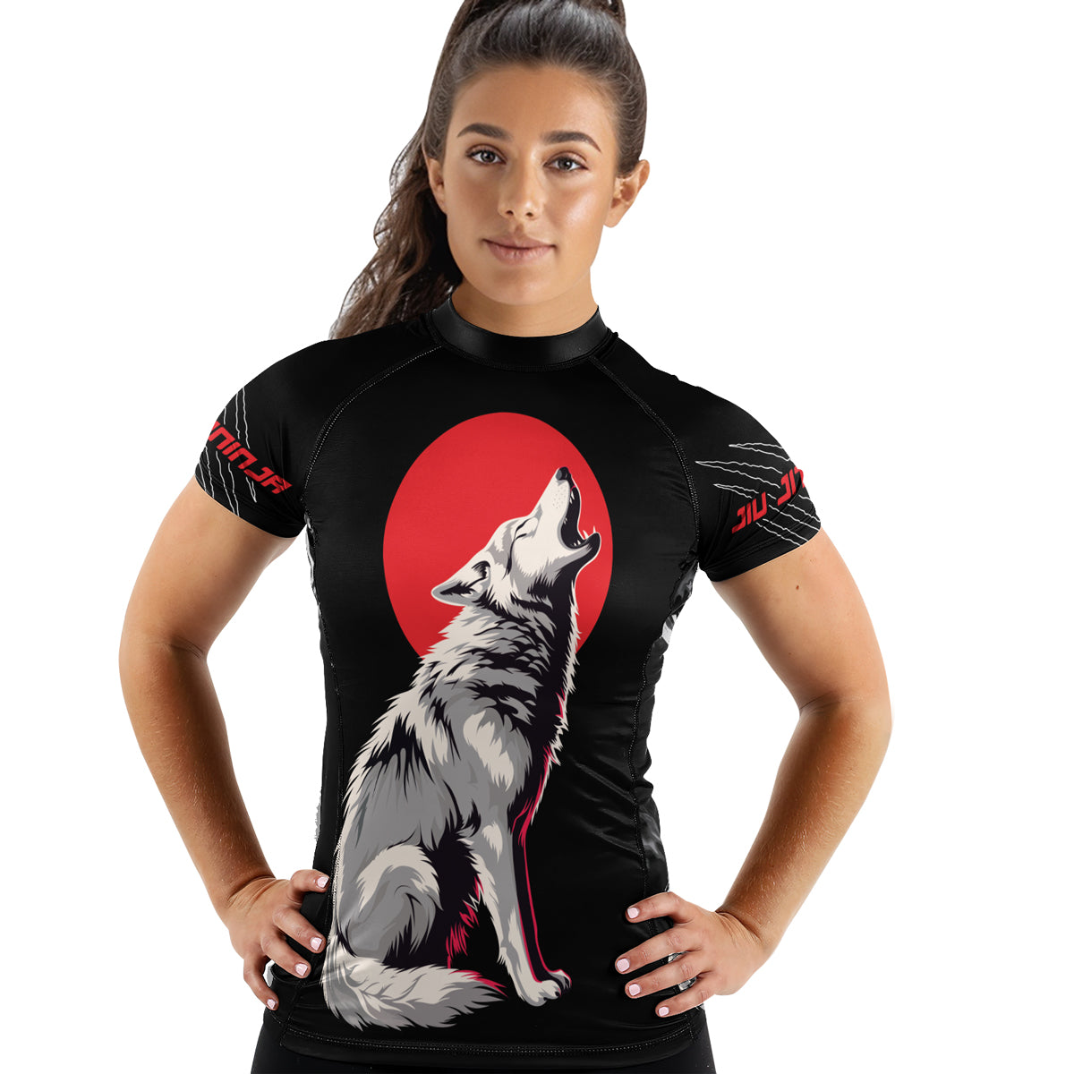 Rashninja Wolf Moon Howl Women's Short Sleeve Rash Guard